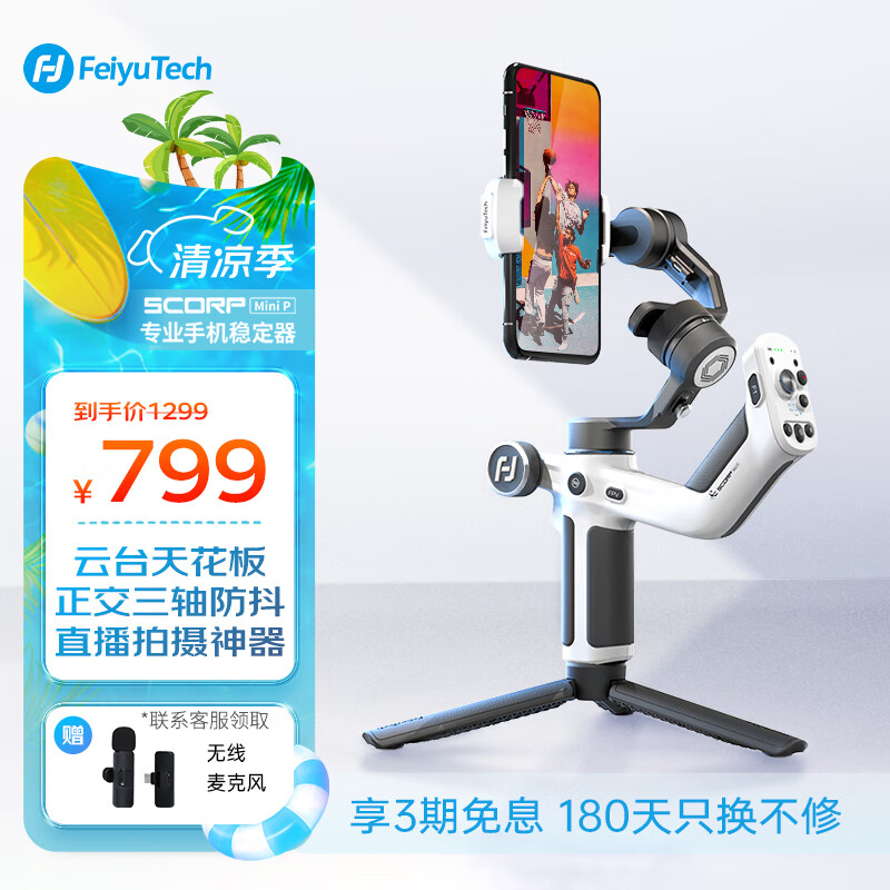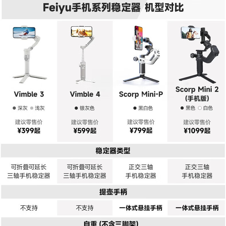 FeiyuTech飞宇蝎子MiniP 手机云台 Scorp miniP专业三轴防抖 提握一体 手持云台稳定器 手机稳定器 黑白色价格:799.00元!