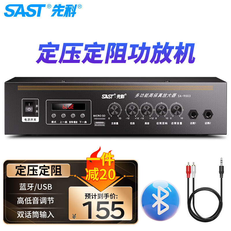 先科(SAST)定压大功率功放机 公共广播吸顶喇叭音响蓝牙功放 黑色价格:175.00元!