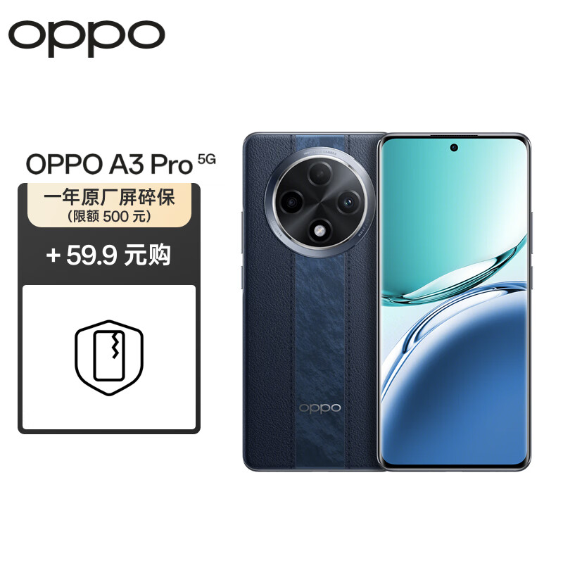 OPPO A3 Pro 12GB+512GB 远山蓝 耐用战神 满级防水 360°抗摔 大电池5G手机【限额一年屏碎保套装】价格:2558.90元!