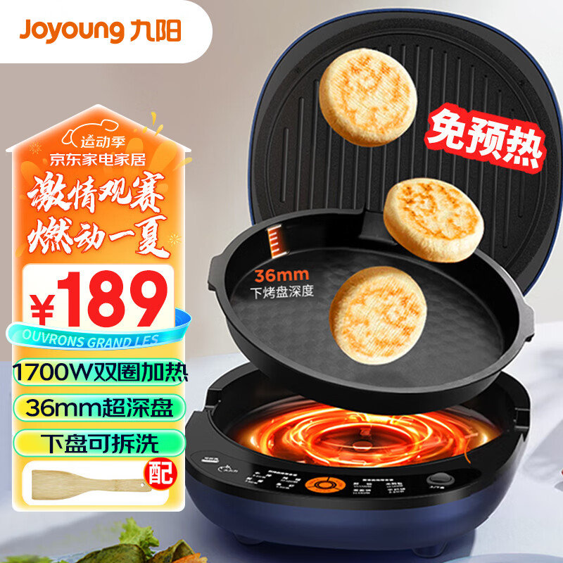 九阳(Joyoung)电饼铛家用煎烤机36mm加深烤盘下盘可拆早餐机1700W大火力烙饼机JK30-GK535价格:189.00元!