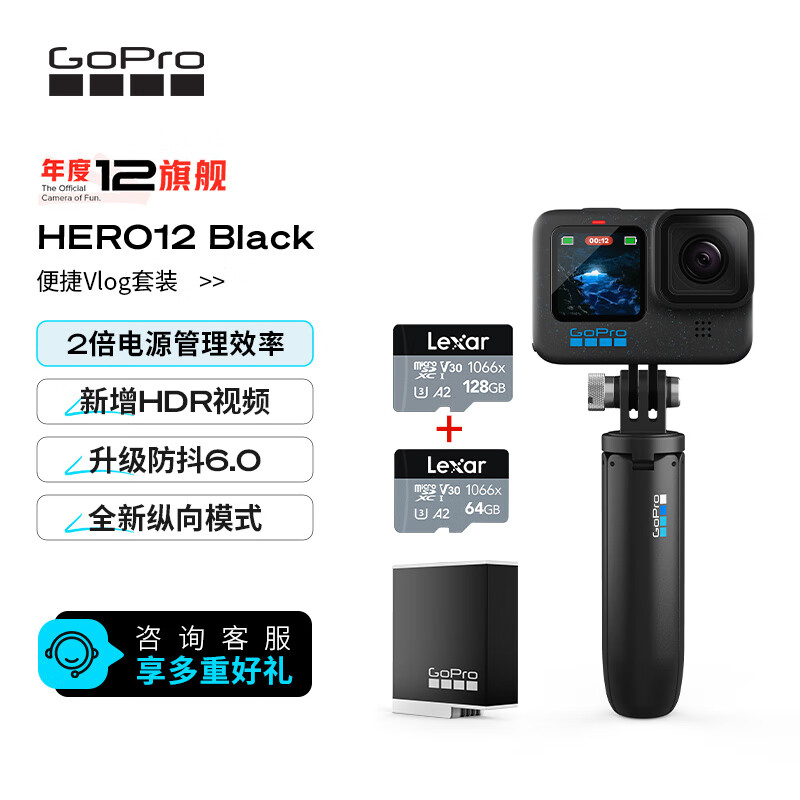 GoProH12 运动相机 户外摩托骑行防抖 水下潜水防水 滑雪照相机 vlog便携套装加128G存储卡套组价格:3907.00元!