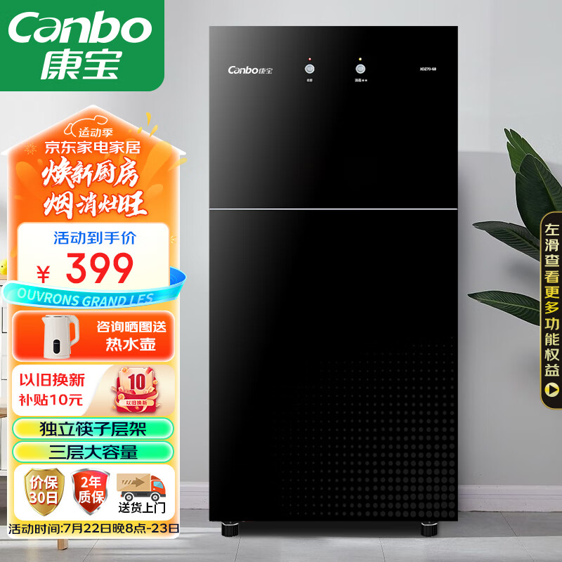康宝(Canbo)消毒柜家用立式小型 二中温高温消毒烘干一体机 厨房柜碗筷收纳柜餐具 双门消毒碗柜 XDZ70-6B价格:519.00元!
