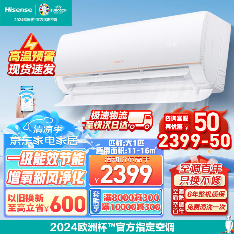 海信(Hisense)大1匹壁空调挂式挂机增氧新风六重净化大风量战神小氧吧X5新一级能效KFR-26GW/X500U-X1价格:2399.00元!