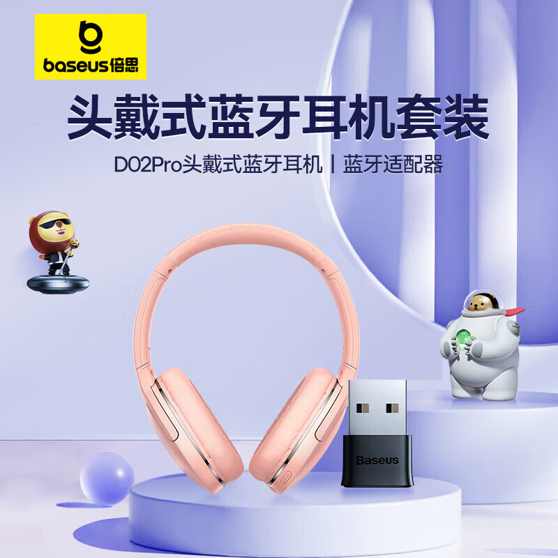 倍思 D02Pro头戴式耳机粉色+蓝牙适配器套装 耳机头戴式蓝牙耳机真无线耳机高音质音乐学生包耳式耳机价格:154.90元!