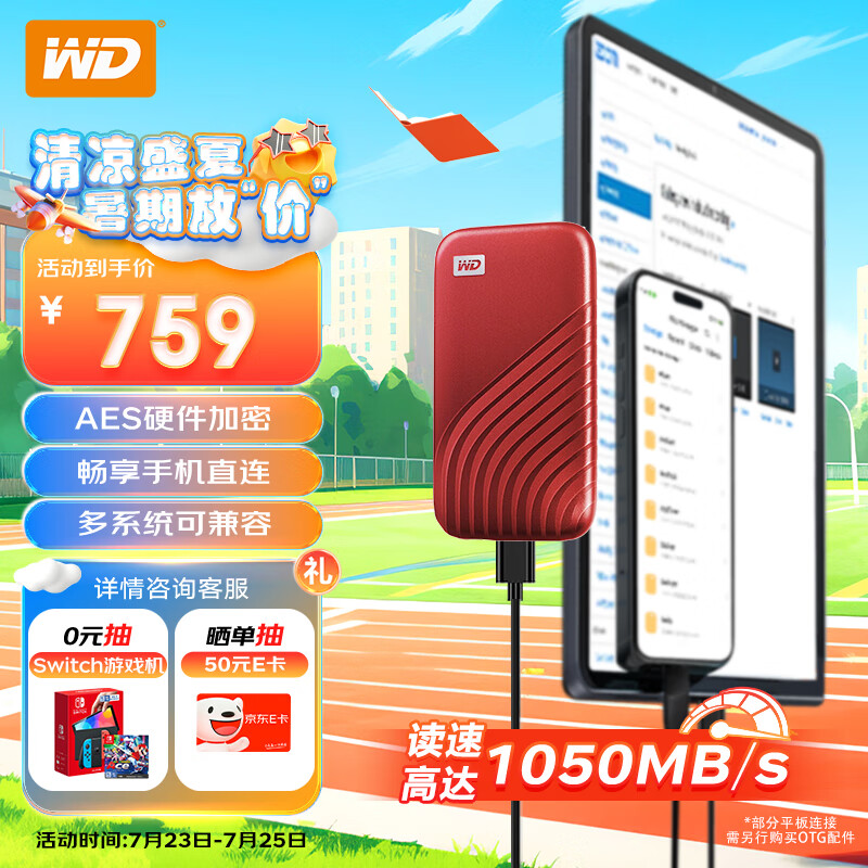 西部数据(WD)1TB NVMe 移动固态硬盘(PSSD)My Passport随行SSD type-c接口 1050MB/s 手机直连笔记本两用价格:759.00元!