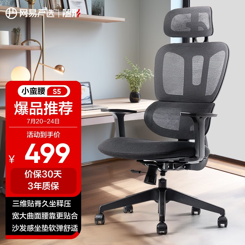 网易严选小蛮腰S5无搁脚 人体工学电脑椅办公电竞老板椅会议学习座椅凳子价格:499.00元!
