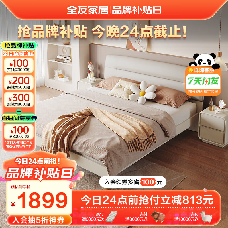 全友家居 床现代轻奢肤感科技布床双人床1.8x2米卧室软靠大床DG10001价格:2712.86元!