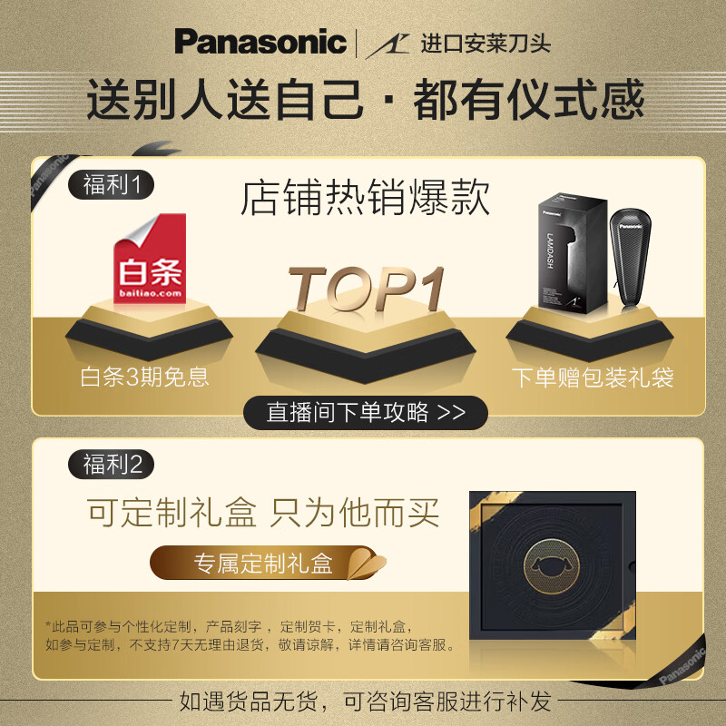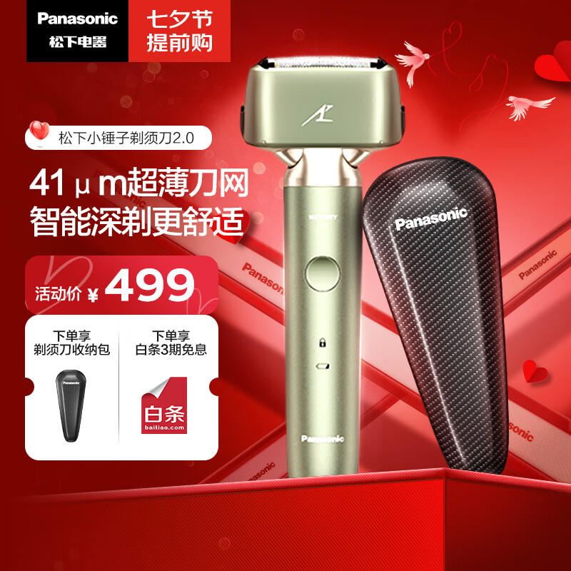 松下(Panasonic)小锤子2.0剃须刀刮胡刀电动往复式磁悬浮马达进口三刀头七夕情人节礼物男士送男友老公JLM3C绿价格:499.00元!