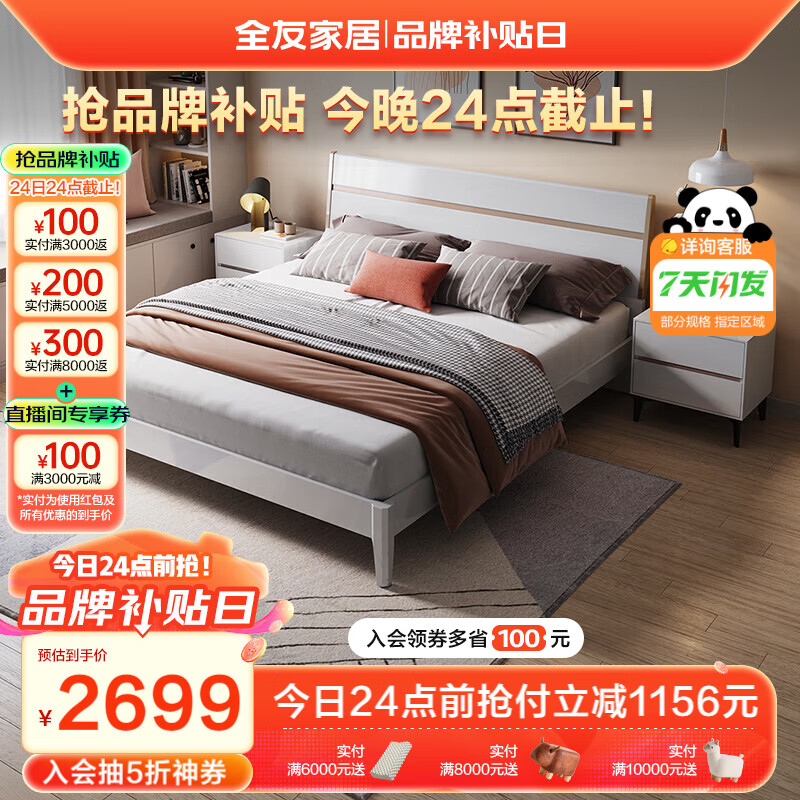 全友家居 床现代简约双人床双色拼接床屏板式床卧室家具126101B价格:3855.71元!