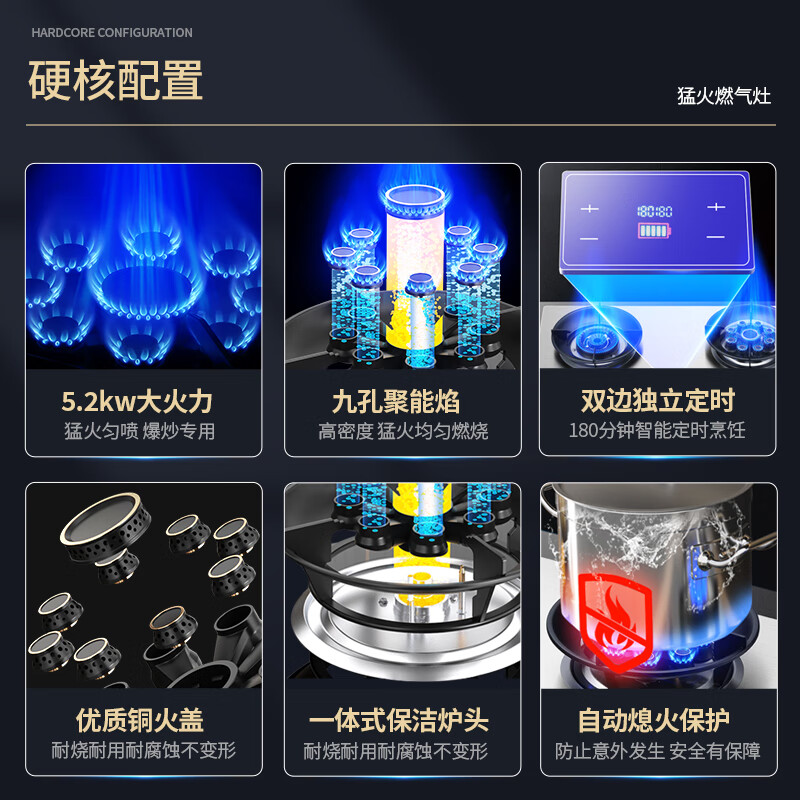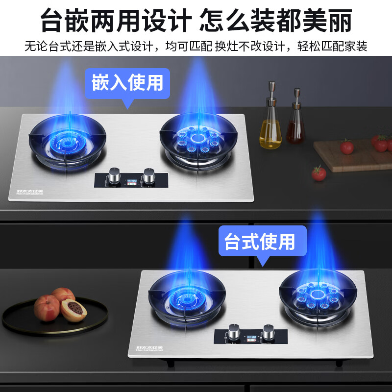 好太太亿美液化气燃气灶双灶家用煤气灶5.2KW台式嵌入式猛火炉具不锈钢定时鸳鸯灶JZY-A6Y价格:368.00元!