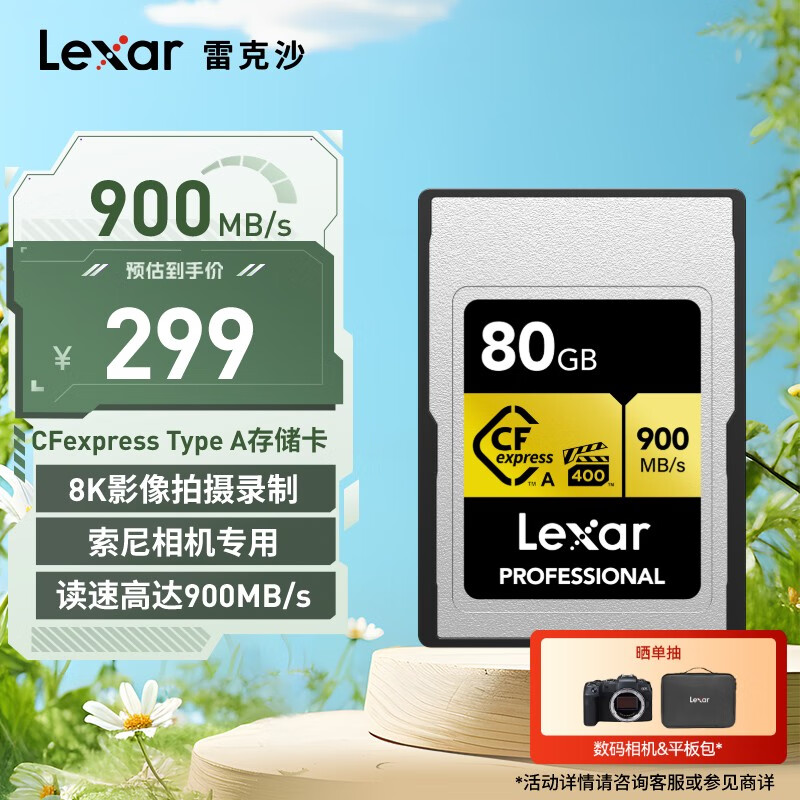 雷克沙(Lexar)80GB Cfexpress Type A存储卡 VPG400 8K录制 索尼相机专用cfa卡 读900MB/s(GOLD)价格:299.00元!