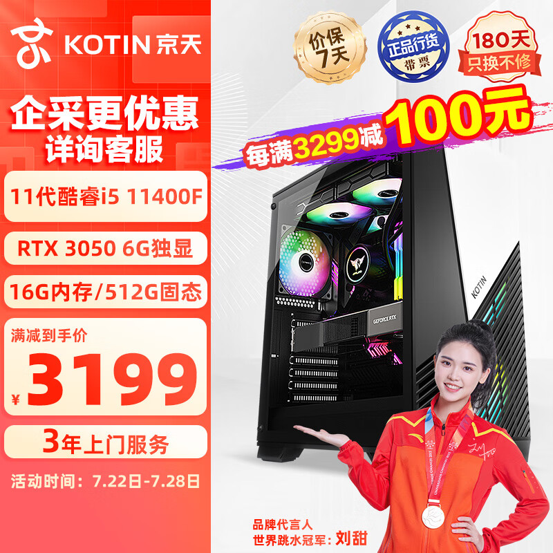 京天 Strike S50 i5-11400F/RTX3050/16G DDR4/512G电脑台式机组装吃鸡电脑游戏主机UPC价格:3299.00元!