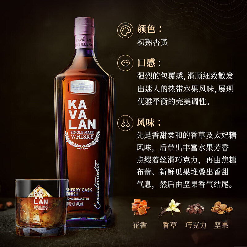 噶玛兰(Kavalan)山川首席系列雪莉桶熟成单一麦芽威士忌700ml中国台湾金车威士忌价格:349.00元!