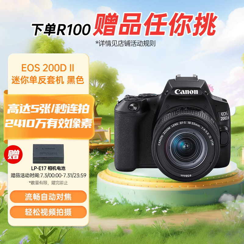 佳能(Canon)EOS 200D2 单反相机 200D II 18-55标准变焦镜头套装 黑色( 约2410万像素/4K短片)价格:5599.00元!