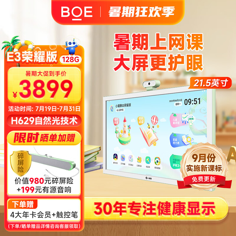 BOE京东方小课屏E3荣耀版128G学生学习平板21.5英寸类纸护眼儿童AI学习机小学初高中同步家教机RAZ价格:3899.00元!