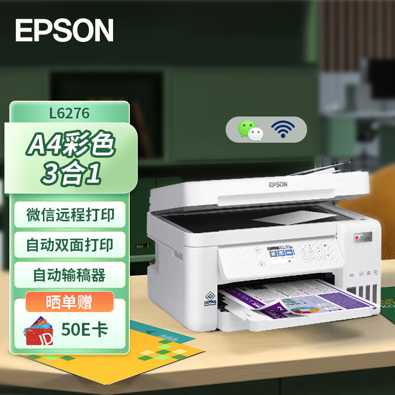 爱普生(EPSON)L6276商用墨仓式彩色多功能一体机 打复扫 wifi 有线 自动双面 自动输稿器 新旧包装随机发货价格:2699.00元!