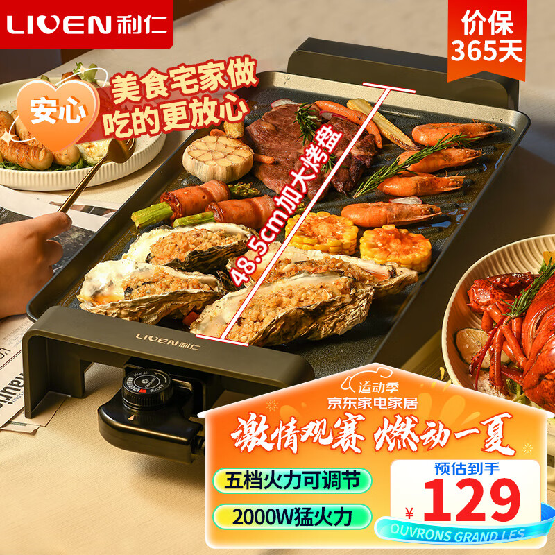 利仁(Liven)电烧烤炉烤肉锅家用烤肉盘烤肉机不粘电烤盘加大烤肉盘多功能煎烤机KL-J4900S价格:129.00元!