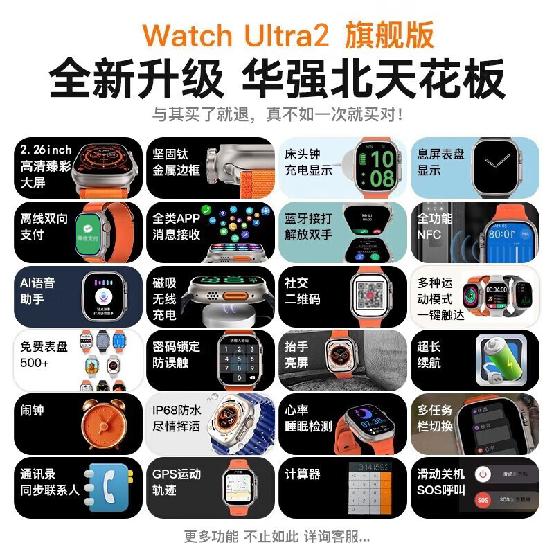 状元骑士 智能手表S9Ultra华强北顶配版全功能防水蓝牙通话Watch9ProMax长续航NFC电话血氧心率健身运动价格:398.00元!