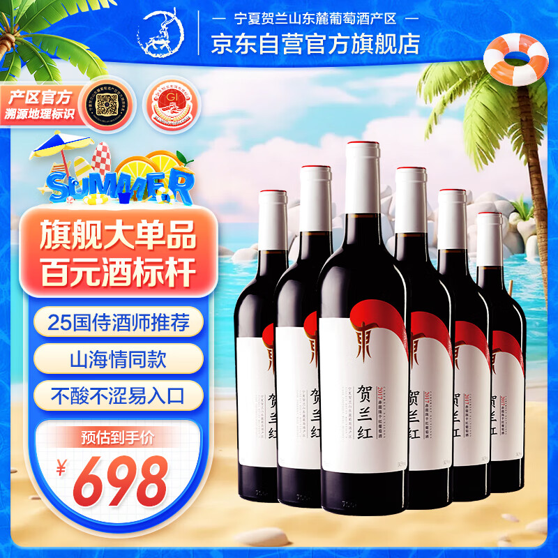贺兰红赤霞珠干红葡萄酒宁夏红酒国产贺兰山东麓产区750ml*6瓶整箱价格:868.00元!