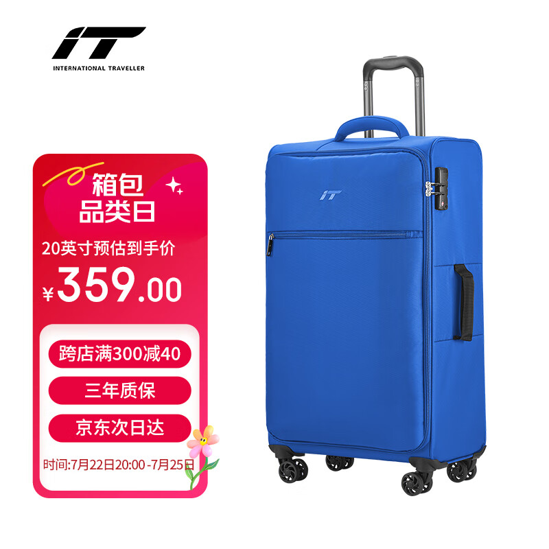 INTERNATIonAL TRAVELLER英国IT拉杆箱登机旅行箱万向轮超轻行李箱20英寸软布箱1191蓝色价格:399.00元!