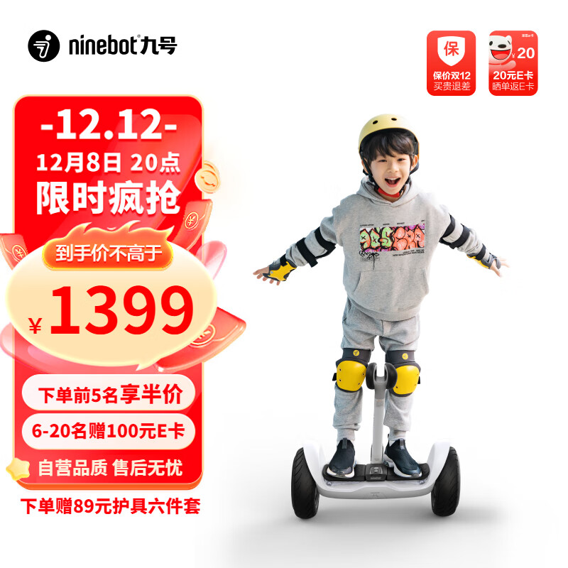 Ninebot九号平衡车L6白色 儿童生日礼物平衡车6-12岁智能双轮腿控9号电动平衡车7-10岁大(支持充气宝)价格:1399.00元!