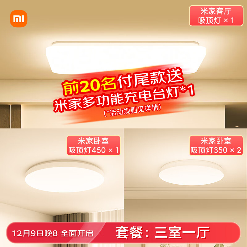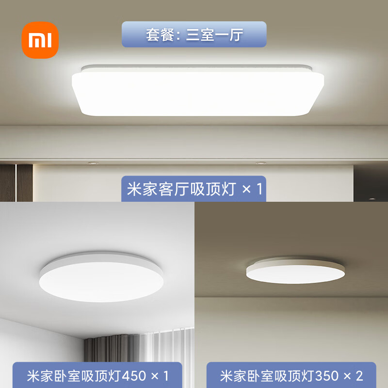 米家【吸顶灯三室一厅套装】95W+45W*1+24W*2简约现代智能卧室吸顶灯价格:1288.00元!
