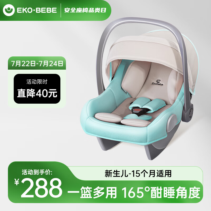 怡戈(Ekobebe)新生儿婴儿提篮式儿童座椅汽车用宝宝便携摇篮车载手提篮米绿价格:328.00元!