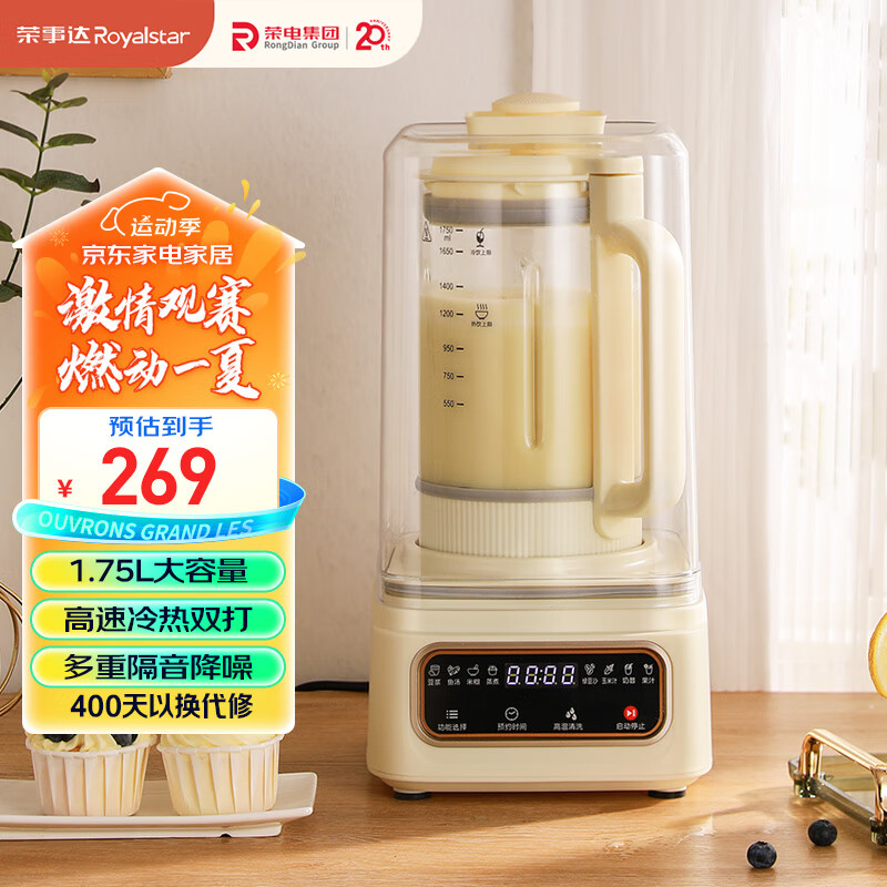 荣事达(Royalstar)破壁机家用豆浆机加热全自动辅食机1.75L大容量降噪搅拌机早餐机柔音 榨汁机 RZ-328E价格:269.00元!