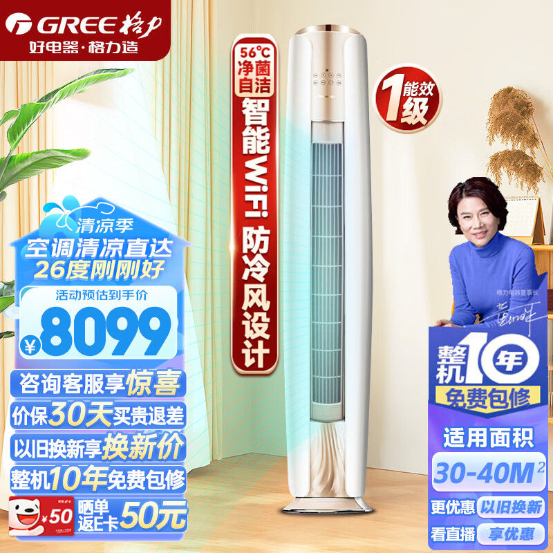 格力(GREE)空调立式 3匹 云焕 1级能效变频 独立除湿 客厅空调柜机KFR-72LW/NhDe1BAj价格:8099.00元!