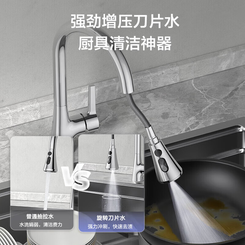 九牧(JOMOO)厨房水龙头冷热三出水抽拉 旋转增压刀片水 33167-594/1B-Z价格:519.00元!