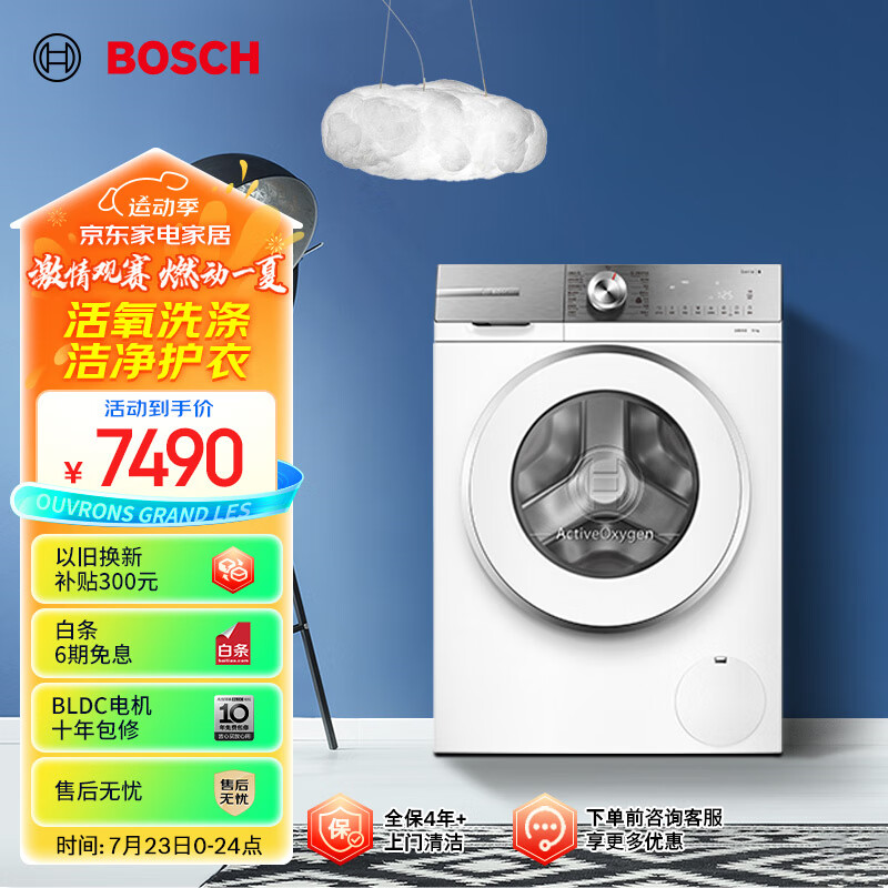 博世(BOSCH)【云朵白·活氧版】6系10KG全自动家用大容量1400转高效智能除菌除螨祛味滚筒洗衣机WGB254E00W价格:7490.00元!