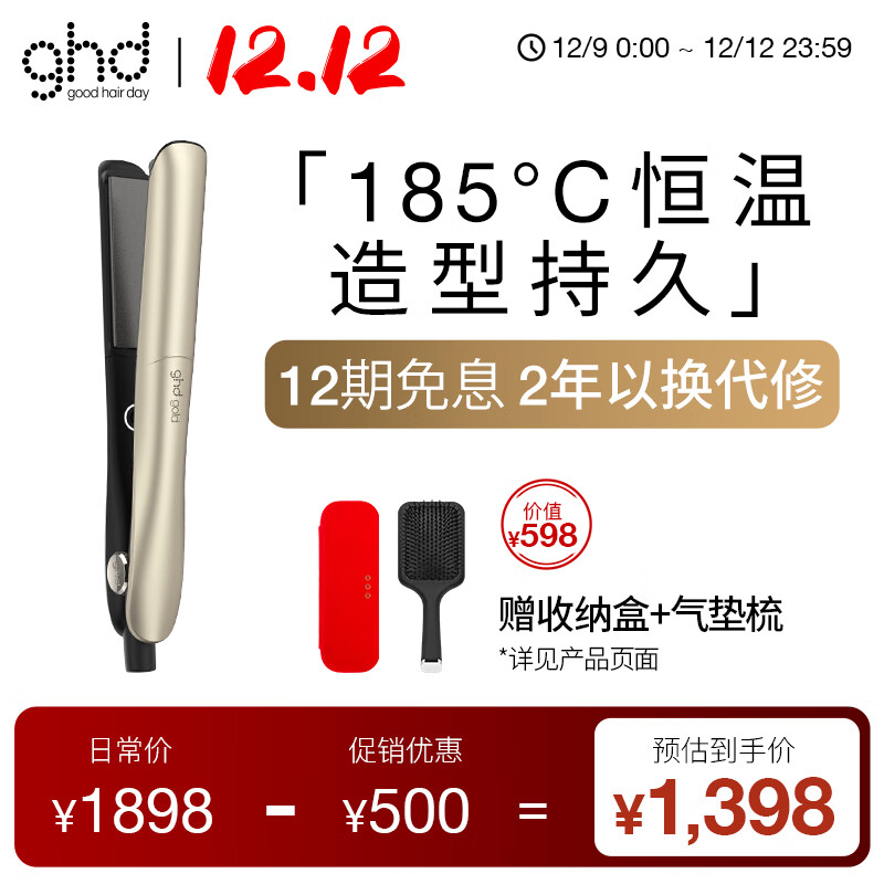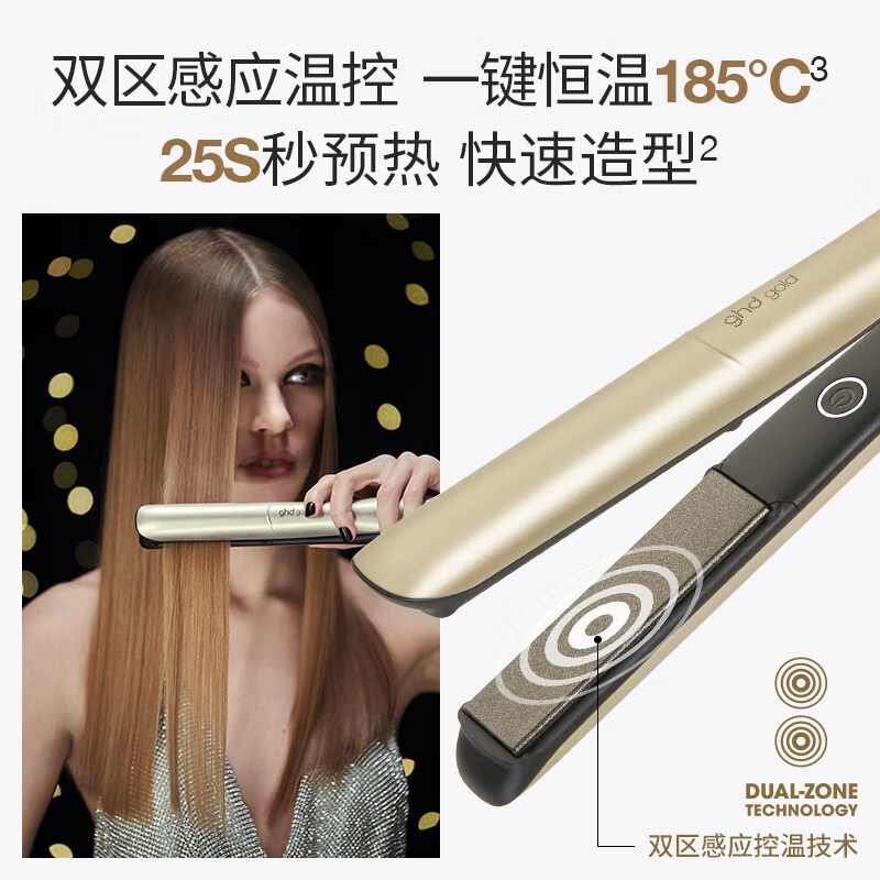 ghd黄金gold美发造型器 185℃恒温减少热损伤直板夹 直卷两用 防烫直发器拉直板 金色直板夹+限量礼盒价格:1598.00元!