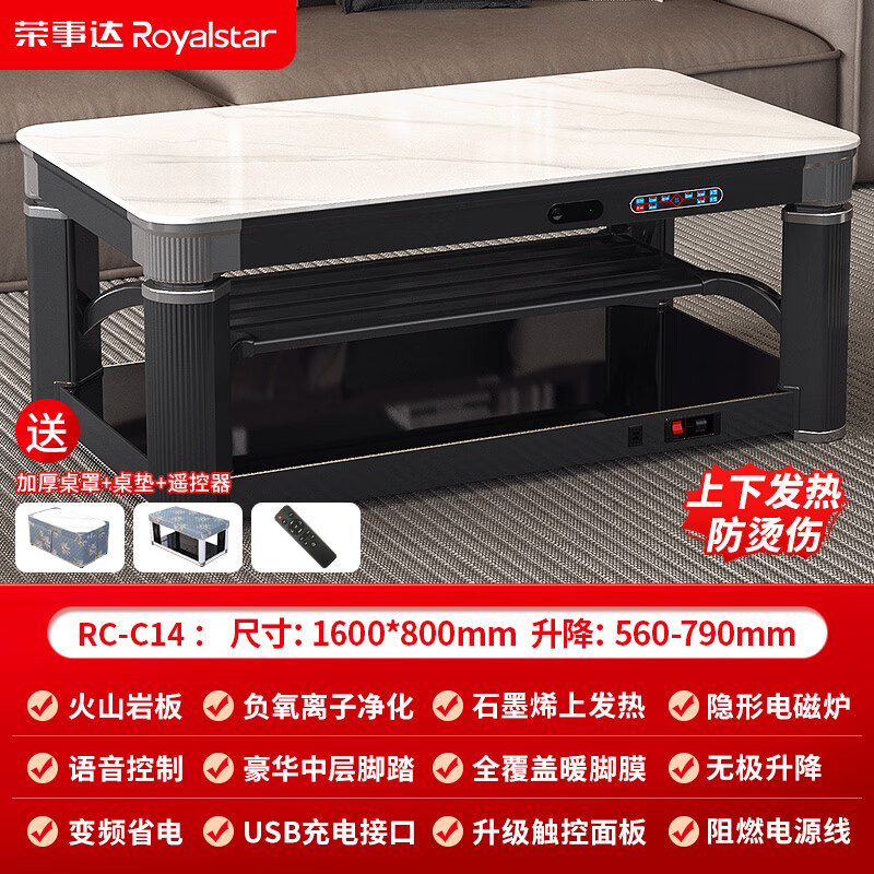 荣事达电暖桌1.6米石墨烯发热烤火茶几带语音控制升降取暖器家用电暖炉取暖桌长方形餐桌烤火桌RC-C14价格:2998.00元!