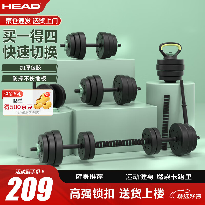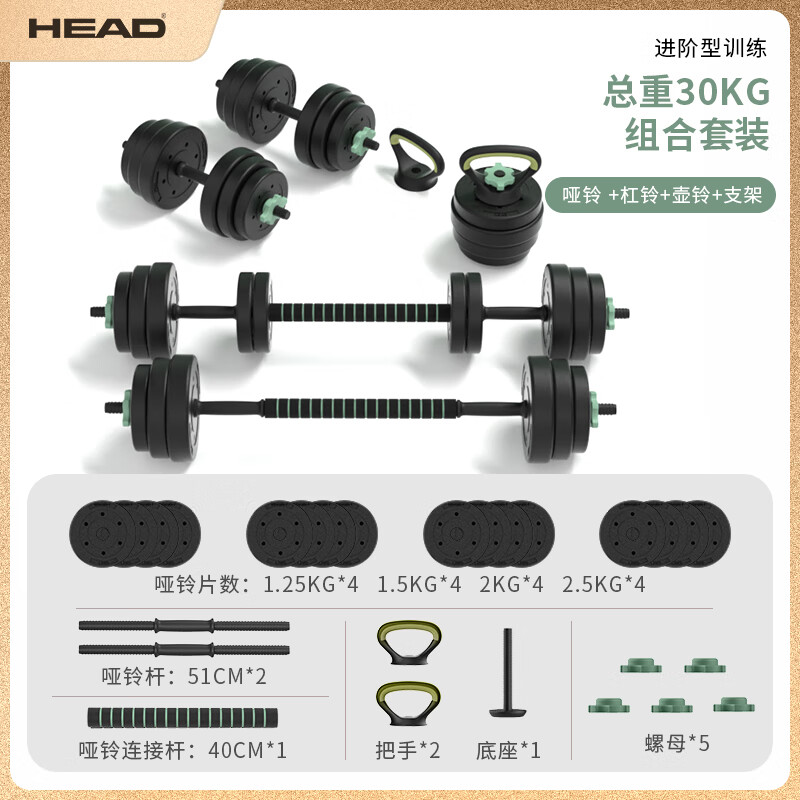 HEAD海德哑铃男家用健身器材杠铃组合套装可调节拆卸30kg价格:209.00元!