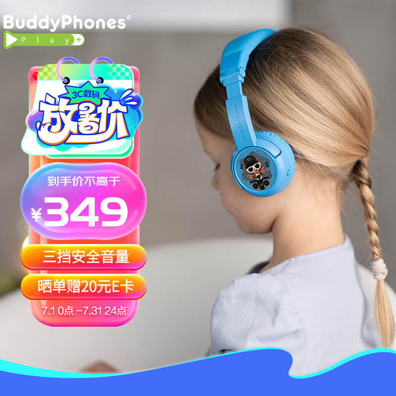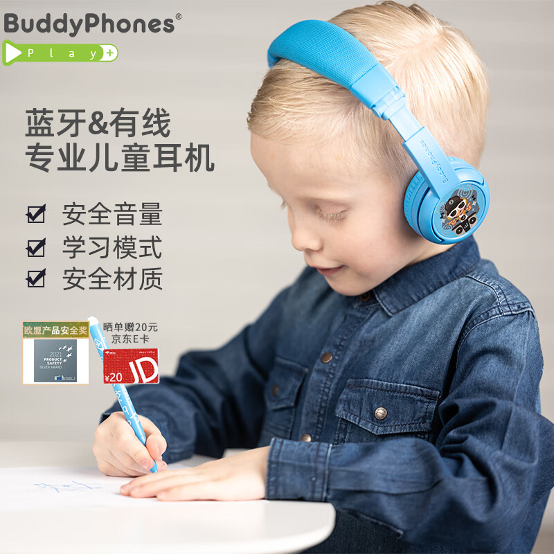 onanoffBuddyPhones儿童耳机头戴式无线蓝牙 网课学生学习耳机苹果安卓手机通用play+天空蓝价格:342.00元!