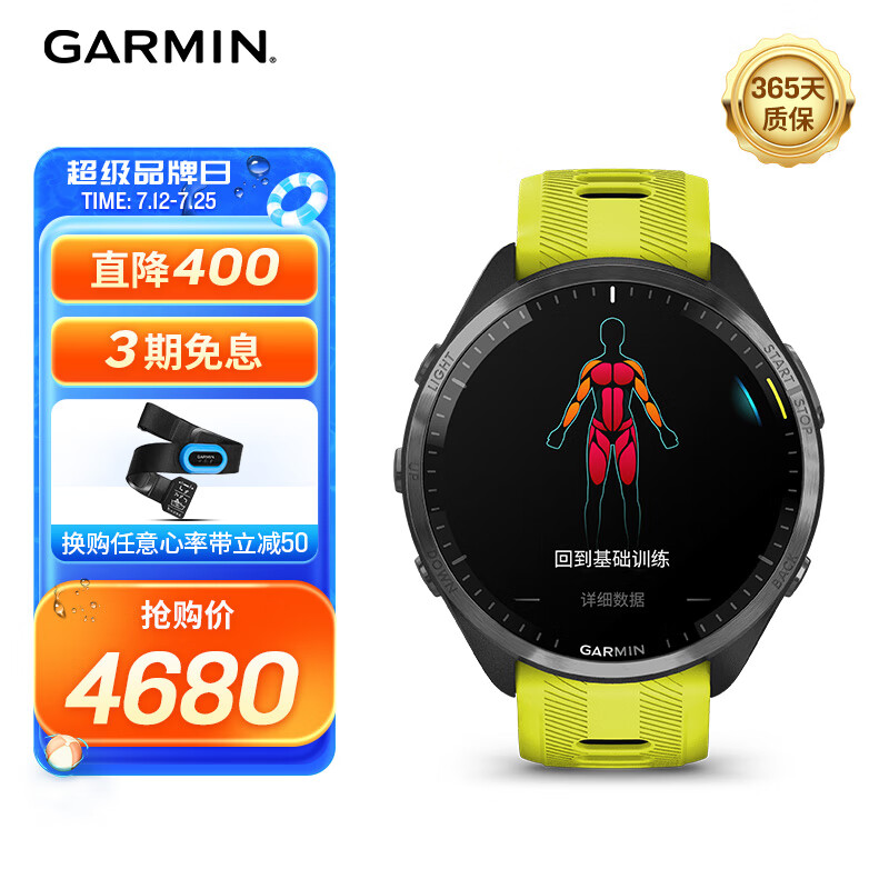 佳明(GARMIN)Forerunner965黄色 跑步游泳智能铁三多功能户外旗舰男女运动手表价格:4680.00元!