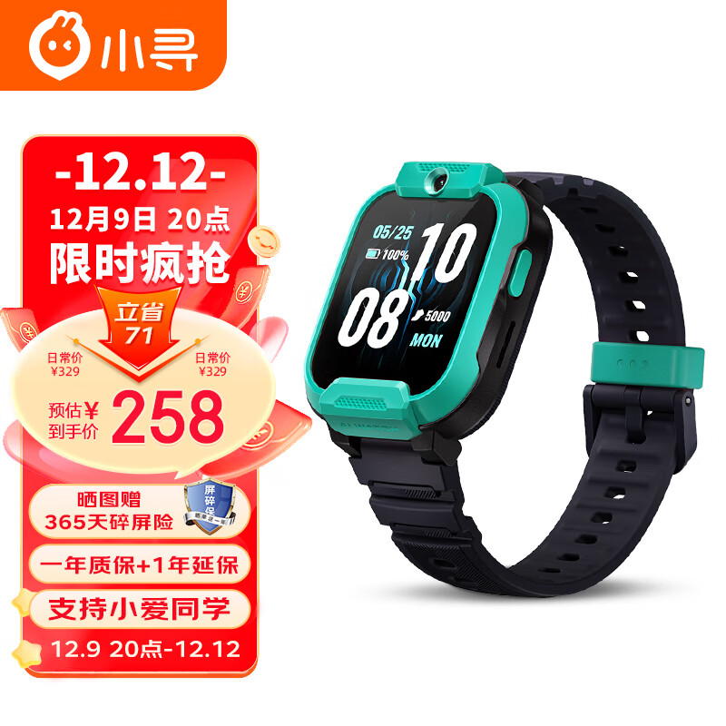 小寻 儿童电话手表T5 智能儿童手表男孩 长续航电话防水定位视频通话拍照小爱同学 学生儿童礼物 冰魄绿价格:258.00元!