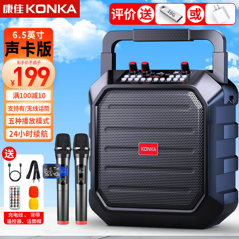 康佳(KONKA)无线蓝牙音箱户外大音量广场舞音响小型家用手提便携式地摊摆摊喇叭收钱码语音播报器 双咪 声卡版价格:209.00元!