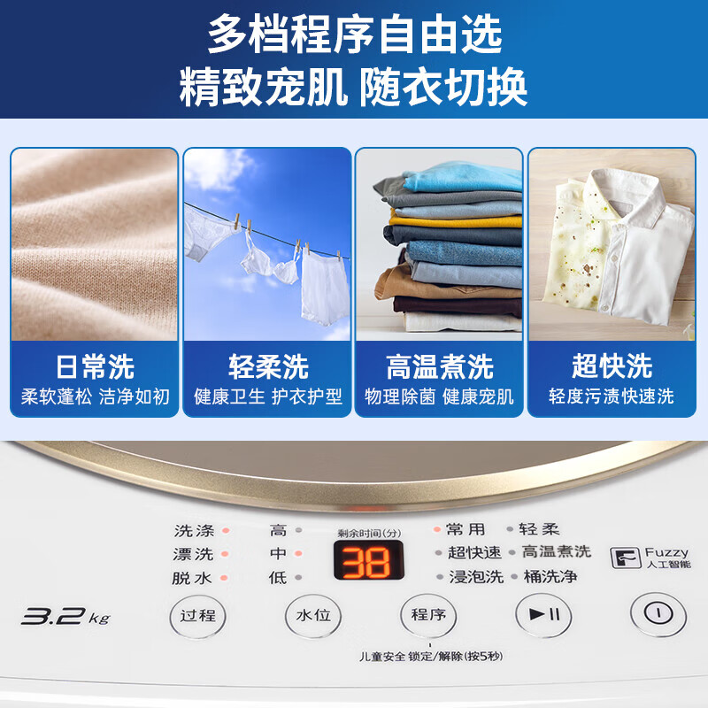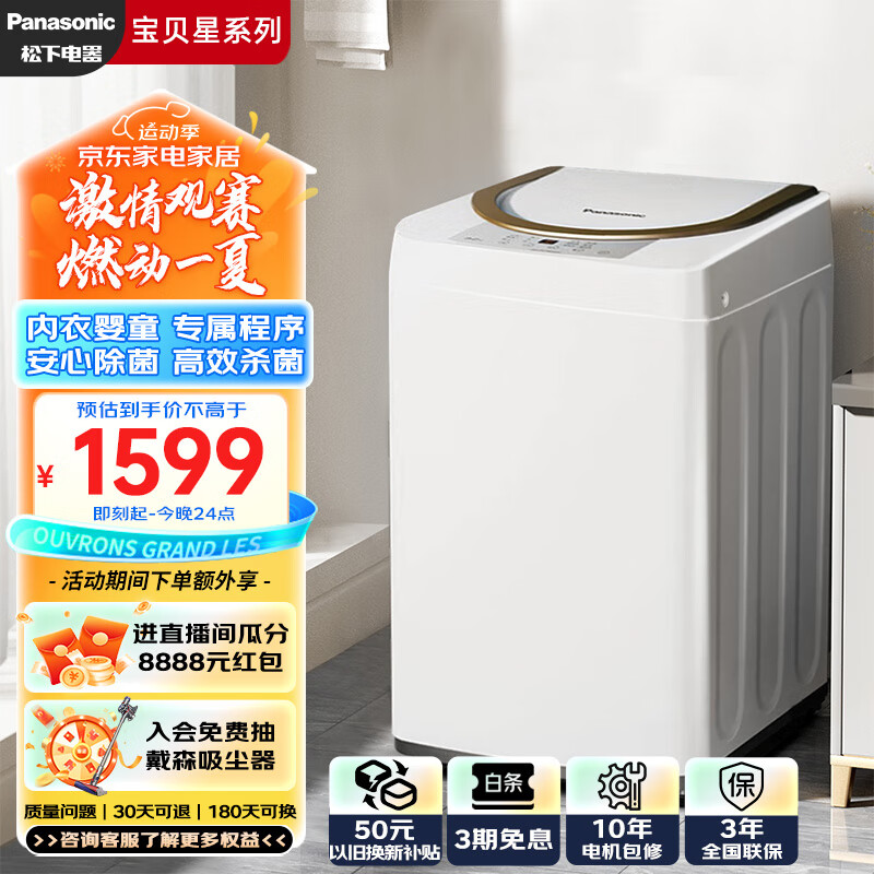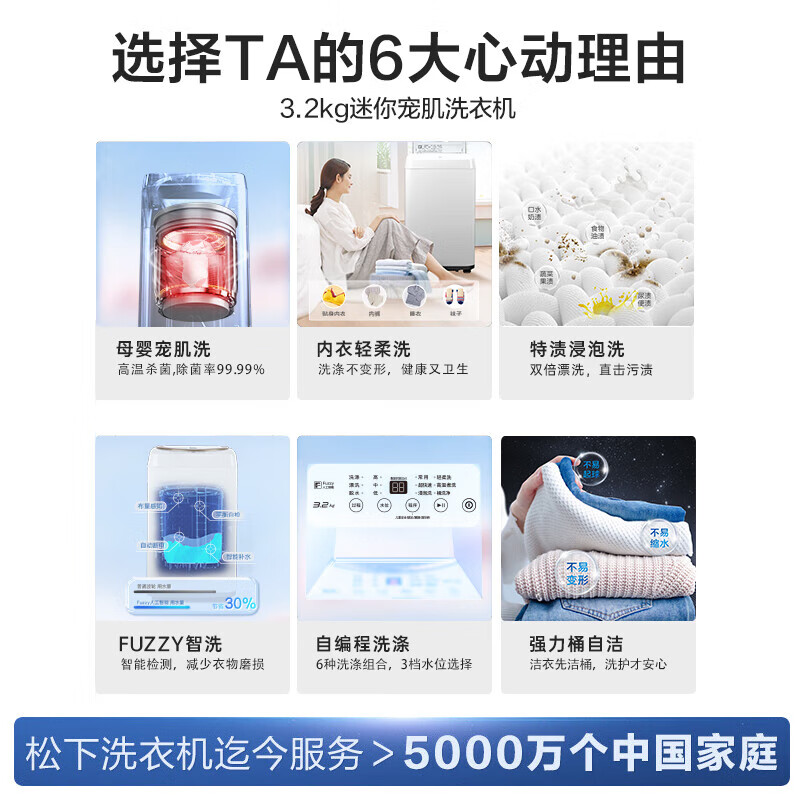 松下(Panasonic)宝贝星 波轮洗衣机 3.2公斤 母婴儿童洗衣机 内衣仿手洗 高温煮洗除菌 内衣洗系列XQB32-P3G21价格:1599.00元!