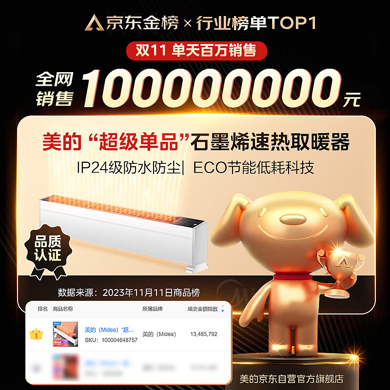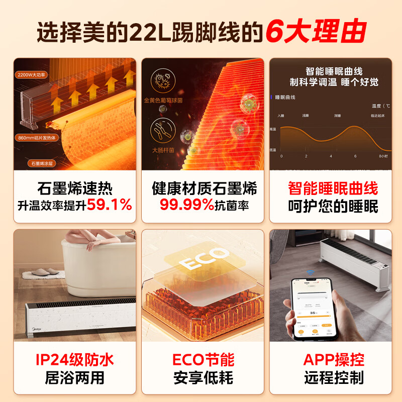 美的(Midea)【超级单品】石墨烯踢脚线/取暖器家用/暖风机/电暖器/电暖气片移动地暖节能防水智能大面积HDY22L价格:499.00元!