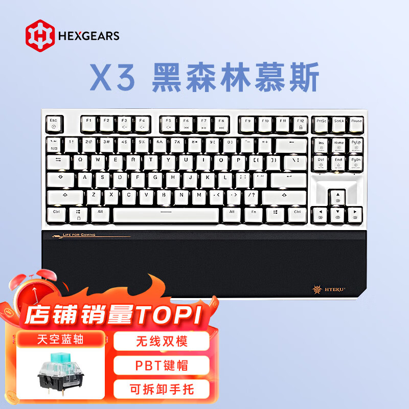 黑峡谷(Hyeku)X3 有线/无线2.4G双模机械键盘 87键PBT键帽 凯华BOX新轴 黑森林慕斯 天空蓝轴 附卡扣腕托价格:199.00元!
