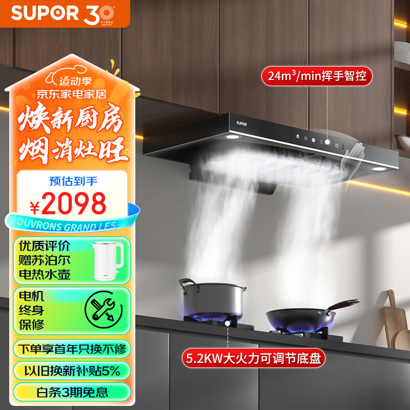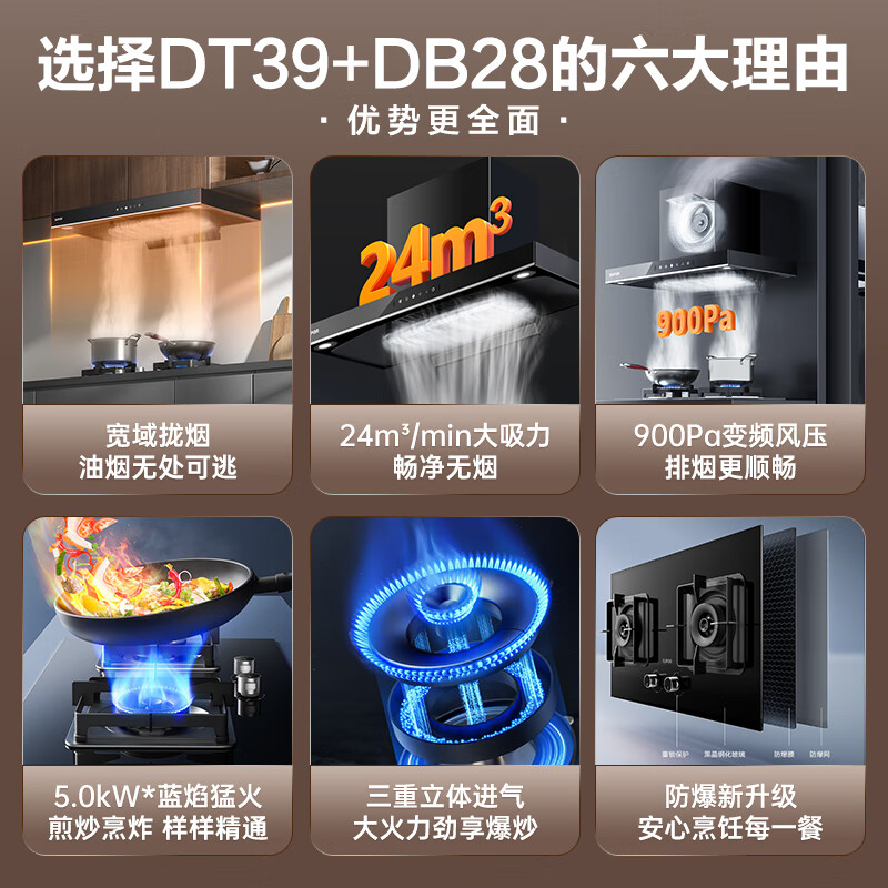 苏泊尔(SUPOR)抽油烟机燃气灶套装 欧式烟灶套装 24立方变频风压挥手智旋干洗吸油烟机DT39+DB28液化气价格:2098.00元!