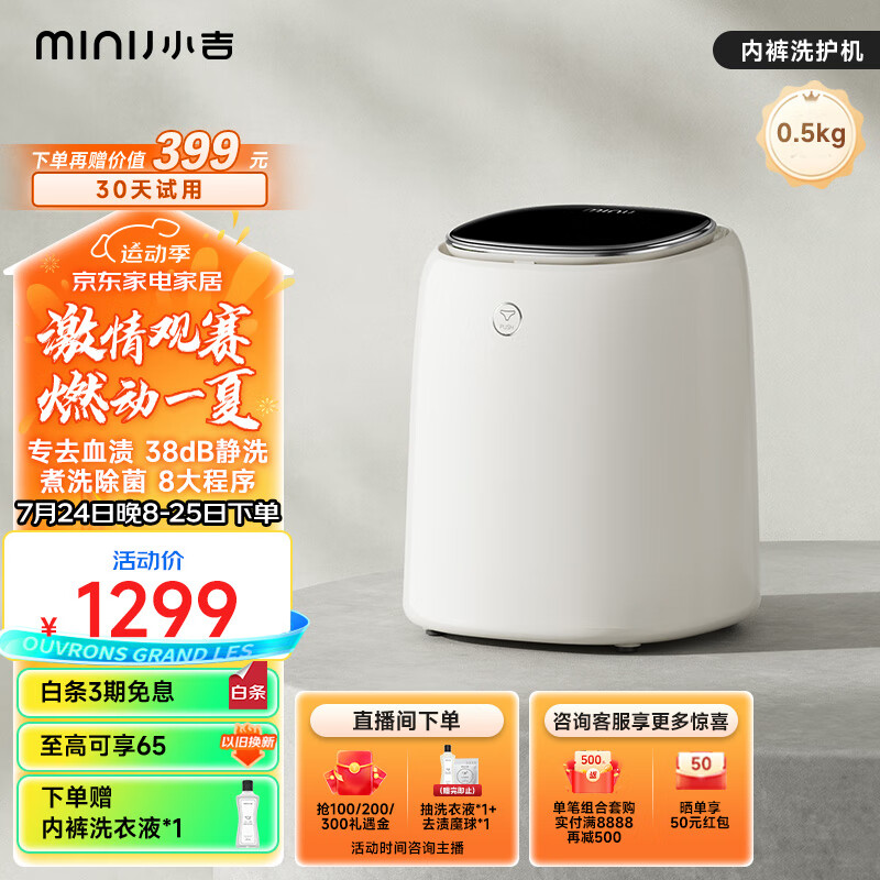 小吉(MINIJ)0.5kg内裤洗衣机 全自动内裤机专用高温煮洗洗内裤机变频内衣洗衣机 U10-M价格:1299.00元!