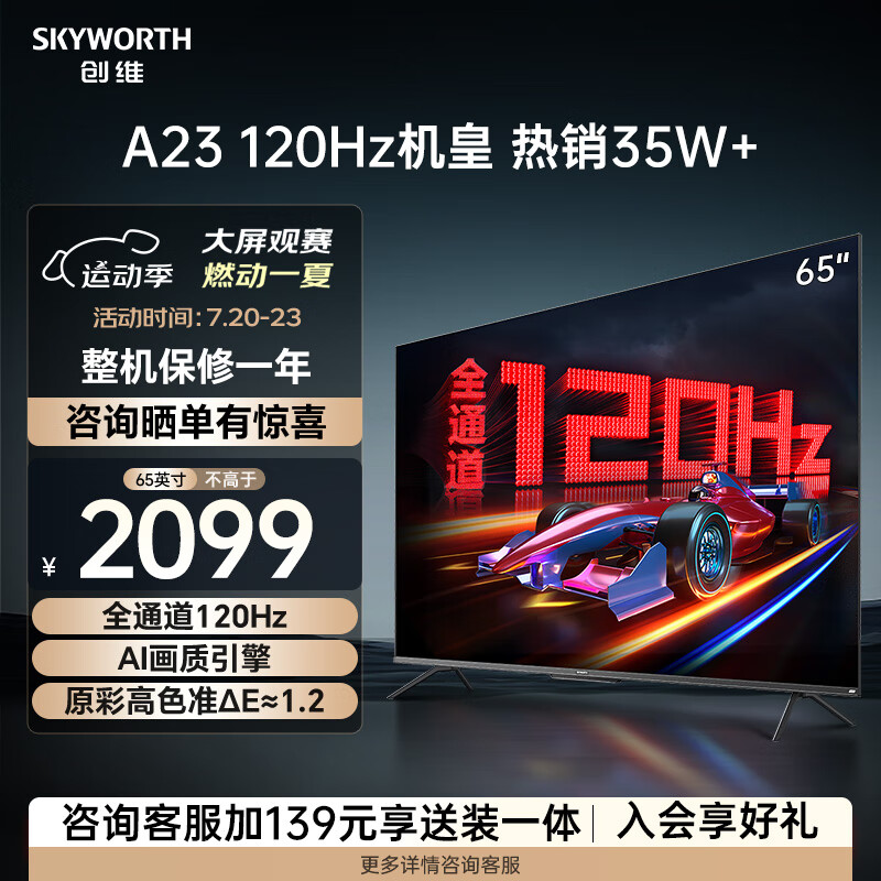 创维电视65A23 65英寸电视机全通道120Hz 2+32G4K超高清护眼声控屏智能液晶价格:2199.00元!
