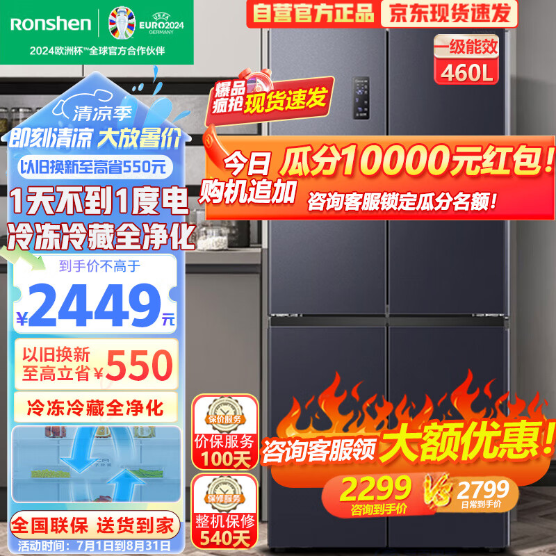 容声(Ronshen)460升冰箱四开门十字对开门一级变频风冷无霜智能全空间净化纤薄嵌入干湿分储BCD-460WD12FPA价格:2799.00元!