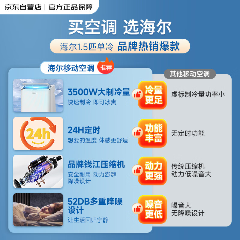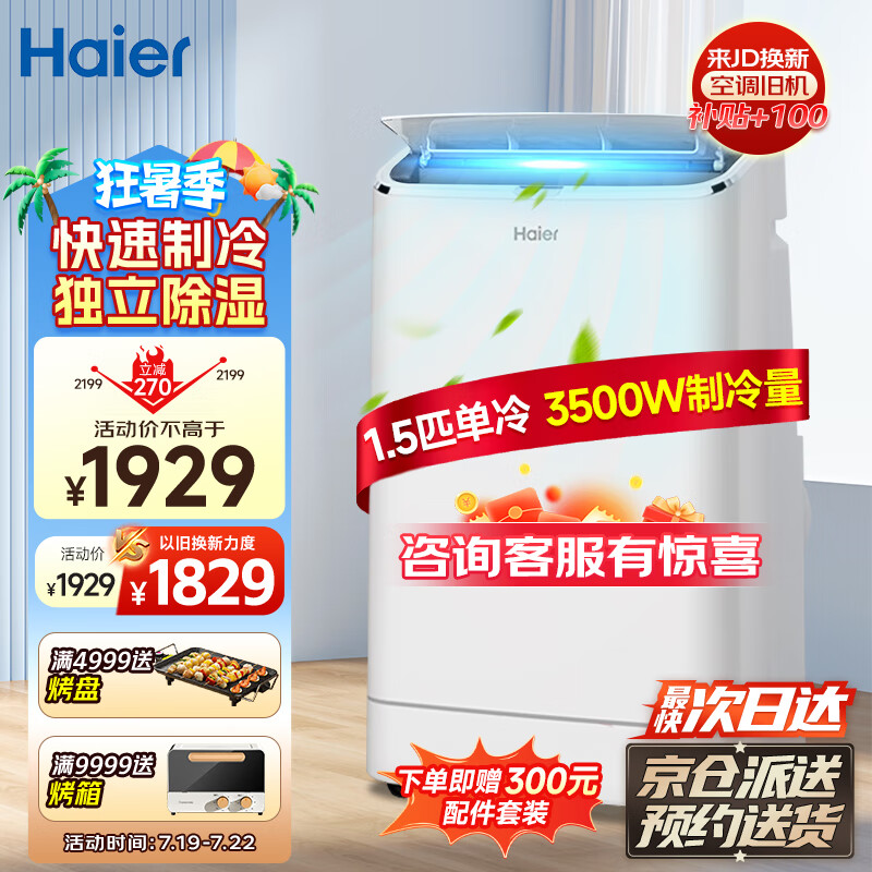 海尔(Haier)移动空调1.5匹单冷 家用厨房一体机免安装便捷立式空调KY-35/J价格:1899.00元!