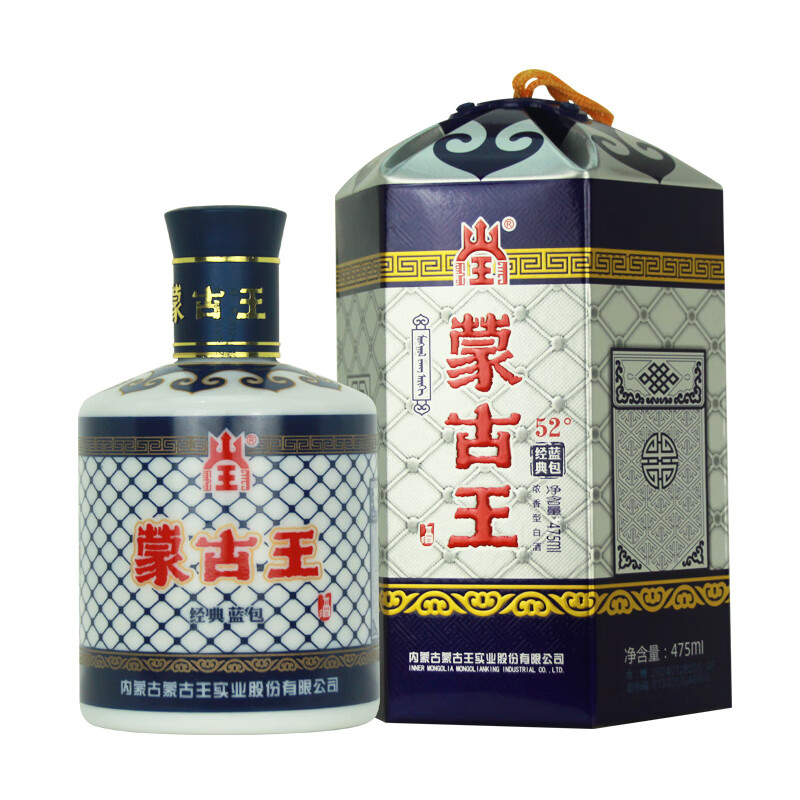 蒙古王 蓝色故乡 浓香型白酒 52度蓝包475ml*1价格:89.00元!