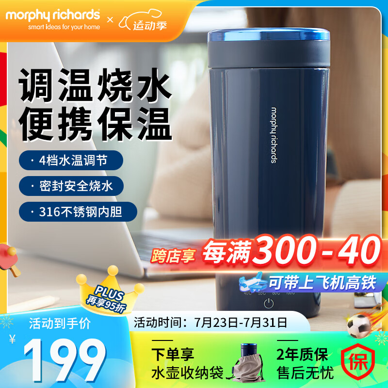 摩飞电器(Morphyrichards)电水壶 电热水杯 便携式家用旅行烧水壶 随行冲奶泡茶办公室养生保温杯MR6060蓝价格:199.00元!