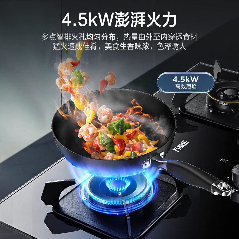 万家乐燃气灶4.5kw大火力 家用嵌入式煤气灶双灶台嵌两用双灶烟灶联动全进风可调节开孔JZY-KV063B液化气价格:1199.00元!