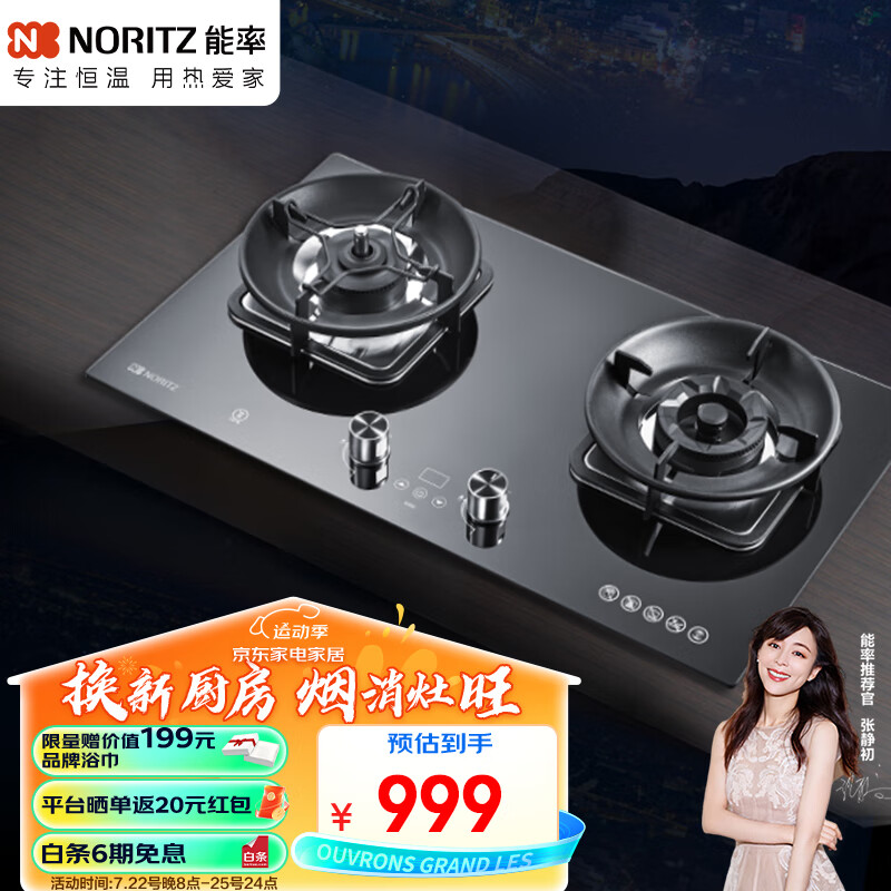 能率(NORITZ)定时燃气灶 离锅熄火防干烧 可调节底盘 台嵌两用5.0KW猛火灶天然气灶65%高热效率183G价格:999.00元!